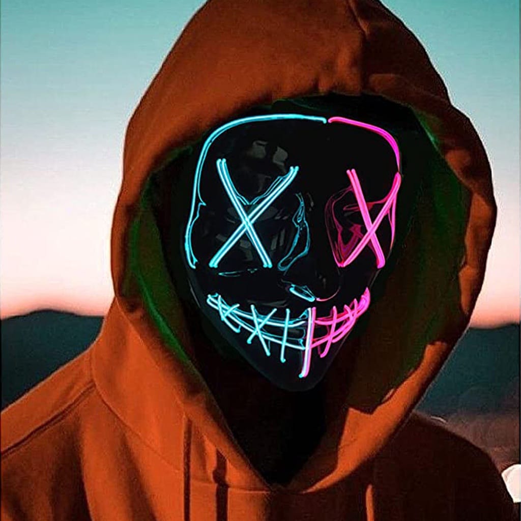 Con nuestra máscara brillante inspirada en La Purga, nadie podrá ignorar tu presencia. Su diseño impactante, luces LED y modos de parpadeo hacen que cada aparición sea escalofriante y única.
